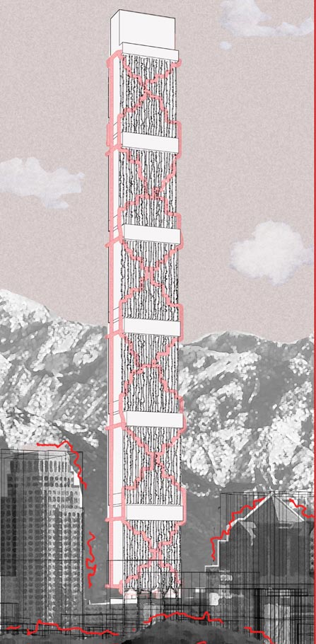 Altius Tower also speculates on the potential of matching the nomenclature of “vertical cities” with a vertical transit system. The transit tubes winding through the tower’s exterior allow users to take in the majestic views of the mountains and the valley, and bring a playful element to the area that is sure to draw many in.